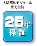 ※出力保証範囲は公称最大出力値(※JIS規格)の90%以上(設置から10年間)、または80%以上(11年目か ら25年目まで)とします。 |