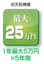 万が一の異常気象などで年間の日照時間が基準値を下回った場合、 高島が業界で初めて導入した「お天気補償」が日照時間に対応して 最大25万円まで補償